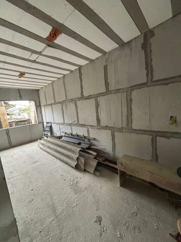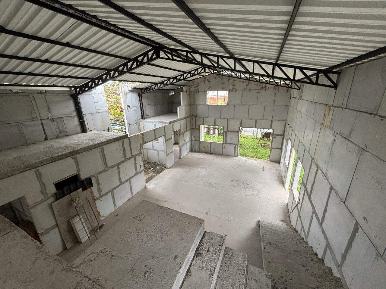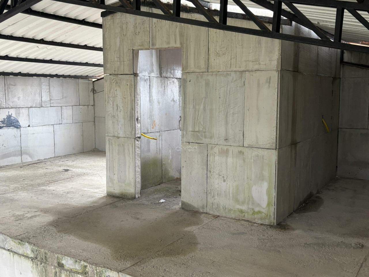 Venda ad corpus de área edificada, inacabada, composta por uma estrutura em alvenaria de aproximadamente 180m², contendo duas salas, um banheiro e cinco vagas.